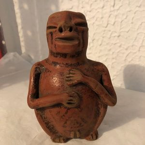 PIEZAS , FIGURAS, PEQUE?O, EN ARCILLA - CULTURA TAYRONA - PITO UTILIZADO EN LOS BAILES TIPICOS DE LA COMUNIDAD , MOTIVO INDIGENA MUJER CON HUECOS EN EL CUERPO , ELABORADO EN ARCILLA, DIMENSIONES: X X , PESO: GRS