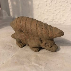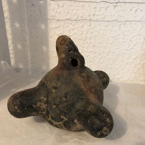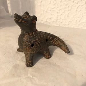 PIEZAS , FIGURAS , PEQUE?O, EN ARCILLA - CULTURA TAYRONA - PITO UTILIZADO EN LOS BAILES TIPICOS DE LA COMUNIDAD , MOTIVO PERRO CON COLA DE COCOGRILO , ELABORADO EN ARCILLA, DIMENSIONES: X X , PESO: GRS
