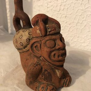 PIEZAS , OTROS, PEQUE?O, EN ARCILLA - CULTURA TUMACO - ALCARRAZA, MOTIVO DEMONIO CON CAPARAZON PEQUE?O DE TORGUGA BLANCA , ELABORADO EN ARCILLA, DIMENSIONES: X X , PESO: GRS