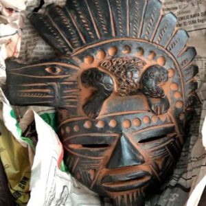 PIEZAS , MASCARAS, MEDIANO, MASCARA INDIGENA EN CERAMICA, MOTIVO MASCARA INDIGENA EN CERAMICA OJOS RASGADOS PEINADO MEDIA LUNA ABANICO, ELABORADO EN CERAMICA, DIMENCIONES: X X , PESO: GRS