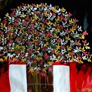 CUADROS, OLEOS, GRANDE, IVAN GUAYASAMIN, OLEO SOBRE LIENZO, MOTIVO HOJAS MULTICOLO, DOBLE FLORERO BLANCO, ELABORADO EN OLEO SOBRE LIENZO, DIMENCIONES: X X , PESO: GRS