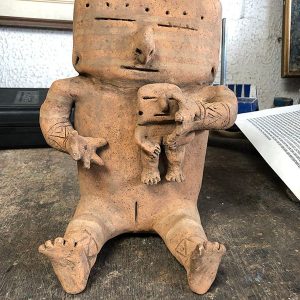 PIEZAS , FIGURA , GRANDE, ARCINA - RETABLO QUIMBAYA DEL QUINDIO , MOTIVO HOMBRE SOSTENIENDO NI?O CON MANOS ABIERTAS , ELABORADO EN ARCILLA, DIMENSIONES: X X , PESO: GRS