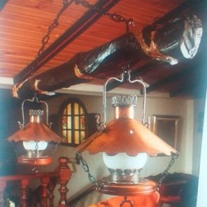 ADORNOS, LAMPARAS, EXTRA GRANDE, LAMPARA DE YUNQUE, MOTIVO ESPECTACULAR LAMPARA YUNQUE, EN MADERA Y BRONCE, DOS LUCES, PARA ESPACIOS GRANDES, ELABORADO EN MADERA Y BRONCE, DIMENCIONES: X X , PESO: GRS