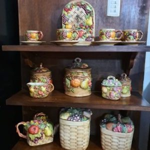 ADORNOS, RECIPIENTES , MEDIANO, VAJILLA DECORATIVA EN CERAMICA, MOTIVO ESPECTACULAR VAJILLA ARTESANAL PINTADA A MANO, 17 PIEZAS INCLUIDO RELOJ FUNCIONAL., ELABORADO EN CERAMICA, DIMENCIONES: X X , PESO: GRS