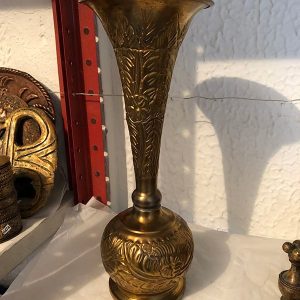 ANTIGUE, JARRON FLORE, GRANDE, EN BRONCE - FLORERO , MOTIVO JARRON BASE EN BOLA DORADA Y CUELLOO DELGADO , ELABORADO EN BRONCE, DIMENSIONES: X X , PESO: GRS