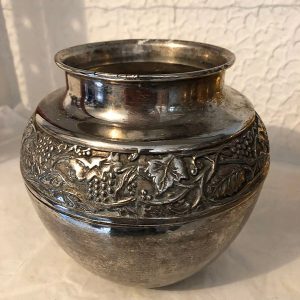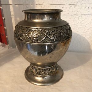 ANTIGUE, JARRON FLORE, MEDIANO, EN PLATA , MOTIVO JARRON EN PLATA DECORACION CON UVAS Y HOJAS EN PUNTA , ELABORADO EN PLATA, DIMENSIONES: X X , PESO: GRS