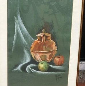 CUADROS, OLEOS, MEDIANO, OLEO SOBRE LIENZO, MOTIVO BODEGON JARRA BRONCE Y MANZANAS VERDE Y RTOJA, ELABORADO EN OLEO SOBRE LIENZO, DIMENCIONES: X X , PESO: GRS